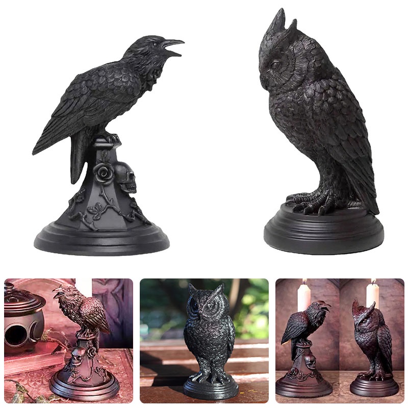 HOT SALE Retro Gótico Preto Corvo Porta Velas Estátua De Halloween Coruja Decoração Resina Artesanato De Escultura Ornamento