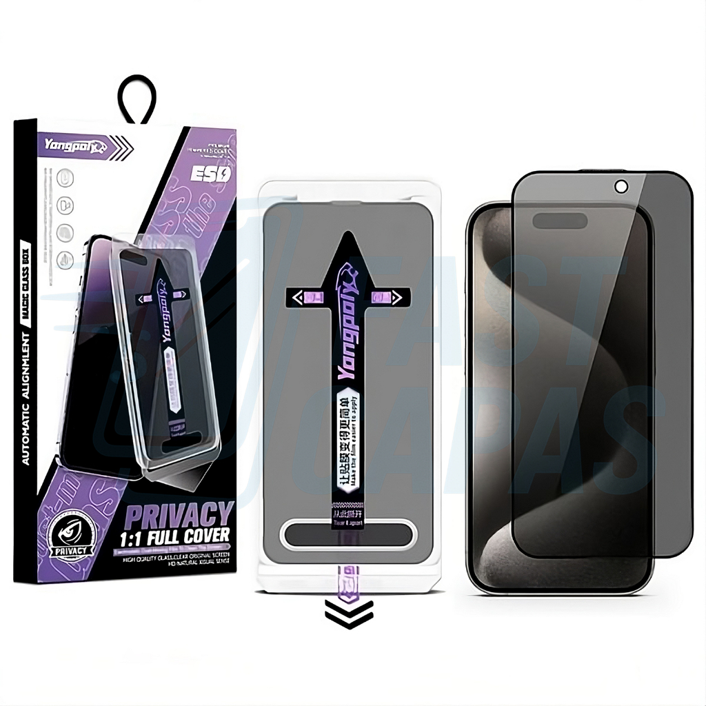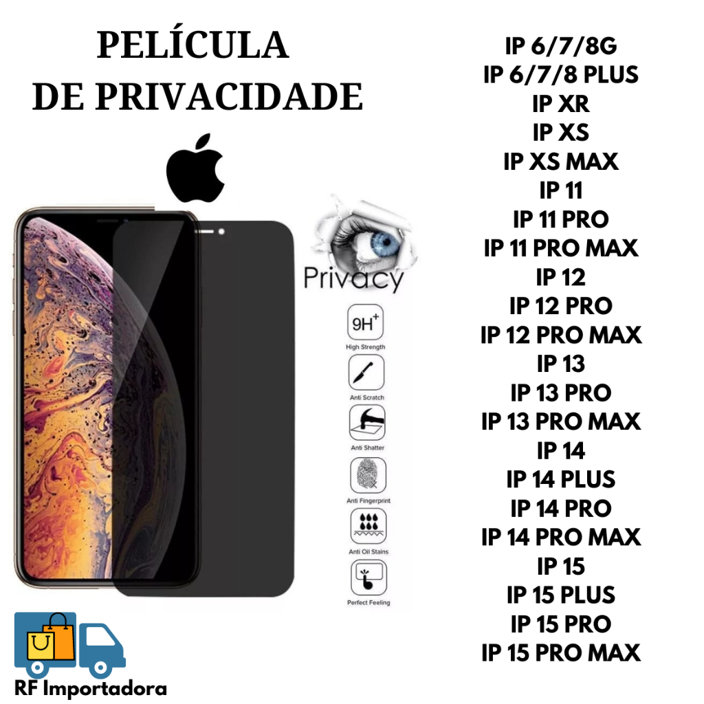 Película Privacidade iPhone Vidro 3D com Aplicador - Modelos 16 15 14 13 12 11 X XR XS Pro Max