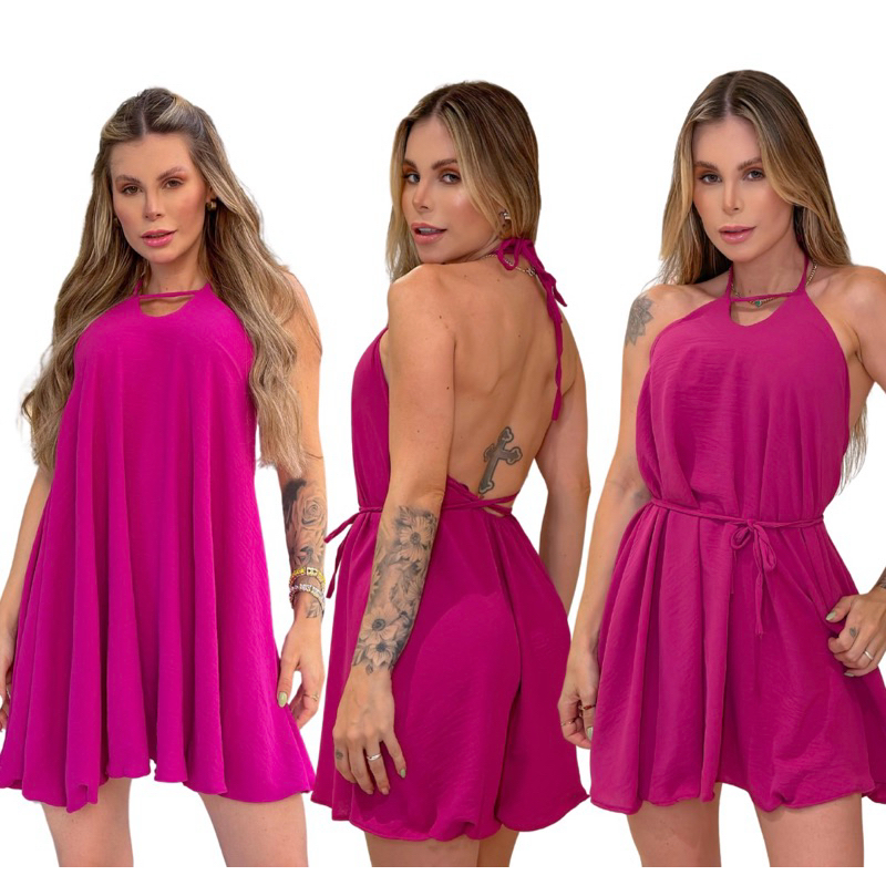 Vestido Feminino Costa Nua Corrente e Bojo Suplex Curto Festa Balada Sensual Blogueira Moda Gabriela