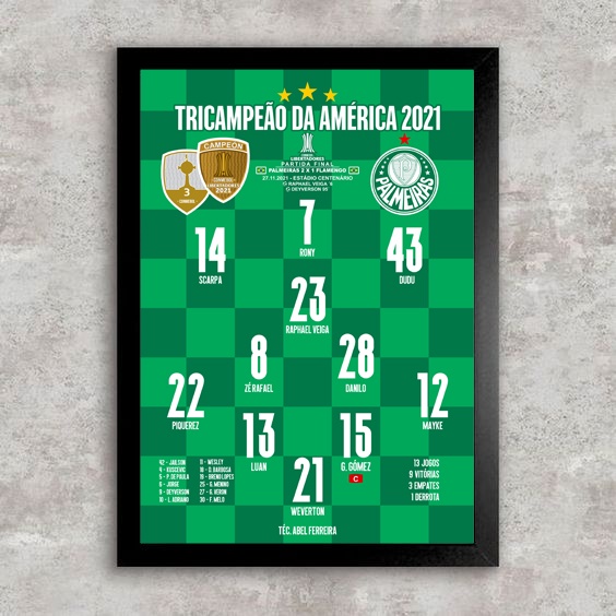 Quadro Decorativo do Palmeiras Tricampeão da Libertadores 1999 - 2020 - 2021 - Campeão da América - Futebol Brasileiro