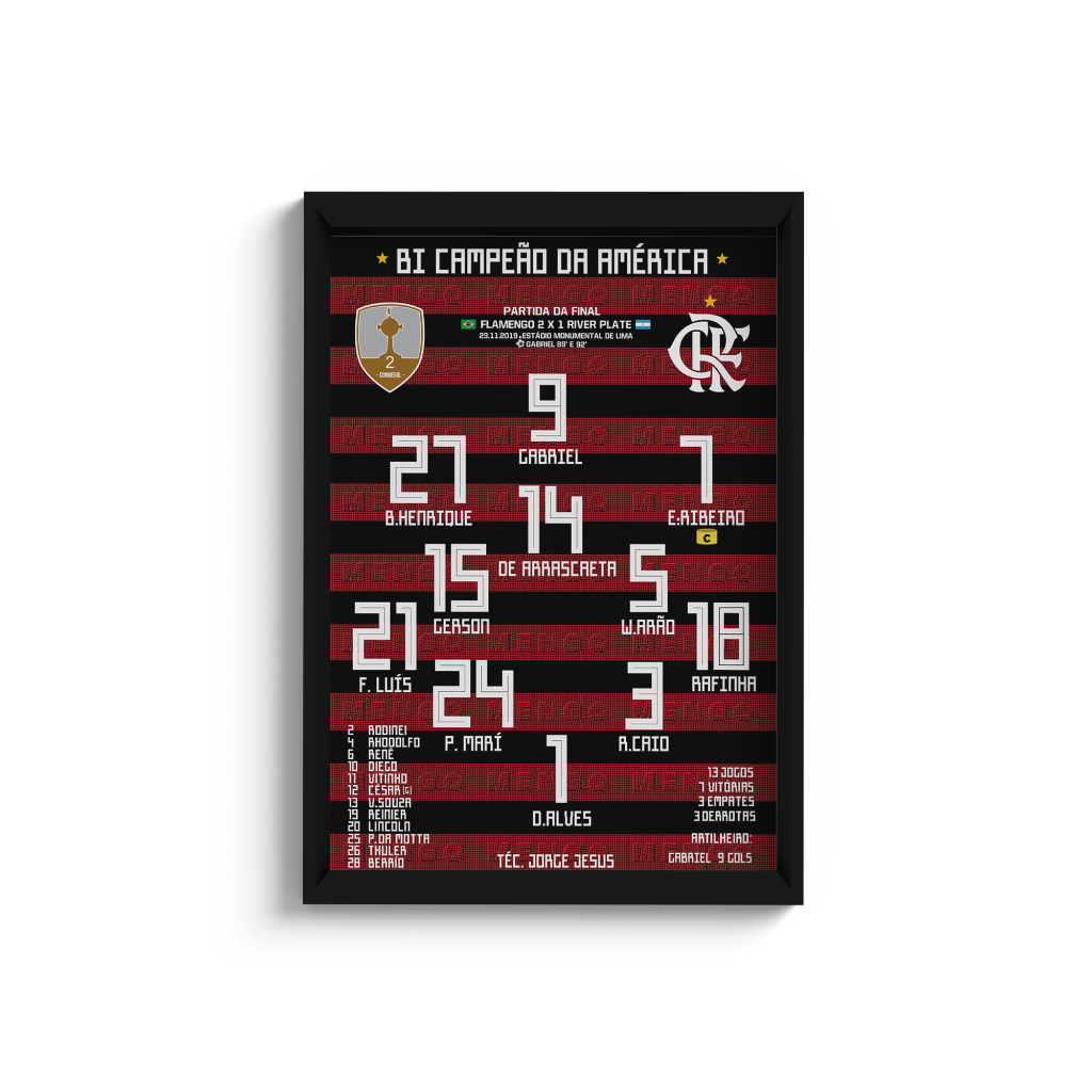 Quadro Decorativo Flamengo Campeão da Libertadores 2019 C/ Moldura e Vidro