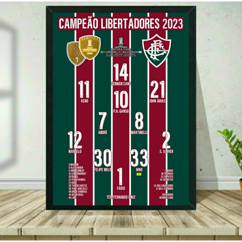 Placa Quadro Decorativo Escalação Fluminense Campeão Libertadores 2023 Decoração Fluzão Tricolor Bar