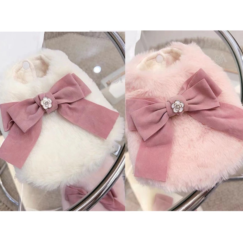 Roupas Femininas De Cachorro Fêmea Bowknote Colete De Pelúcia Vestido Para Shih Tzu Quentes De Inverno De Gato Gatinho Fofas De Aniversário