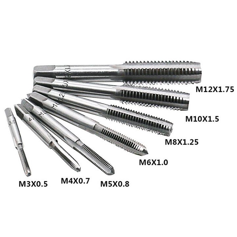 Jogo De Macho Com 8 Peças Para Abrir Roscas M3 A M12 Com Manopla Universal Macho Polegada E Milimetro