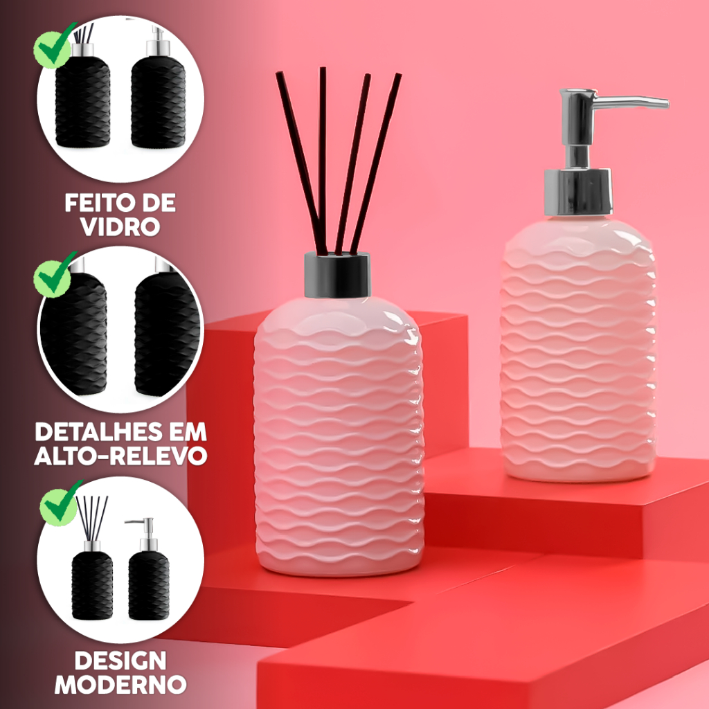 Kit Lavabo Banheiro em Vidro Porta Sabonete Liquido e Difusor de Ambiente