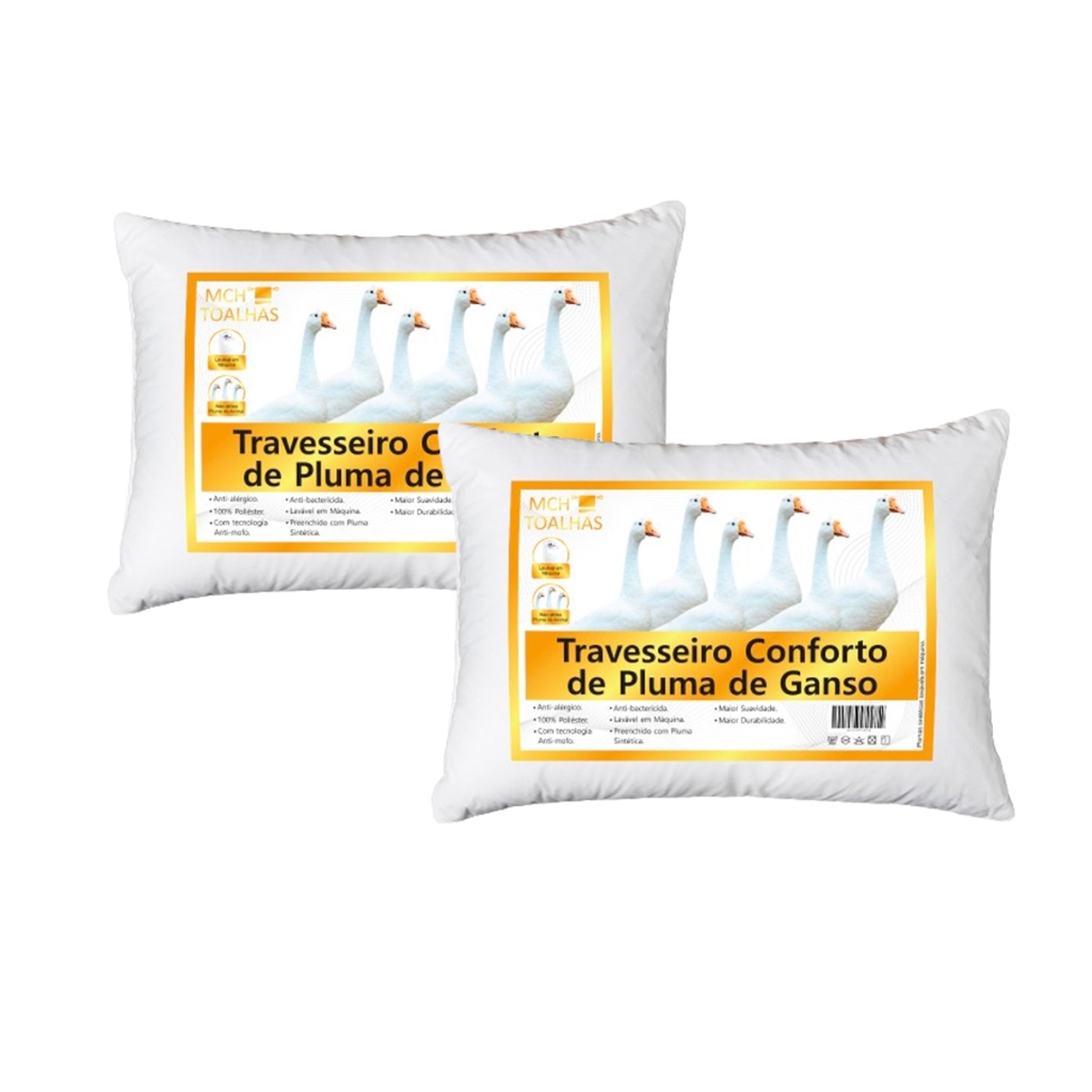 Kit 2 Travesseiro Pluma de Ganso Descanso Antiacaro 70x50cm Toque Macio - Loja Mch Toalhas