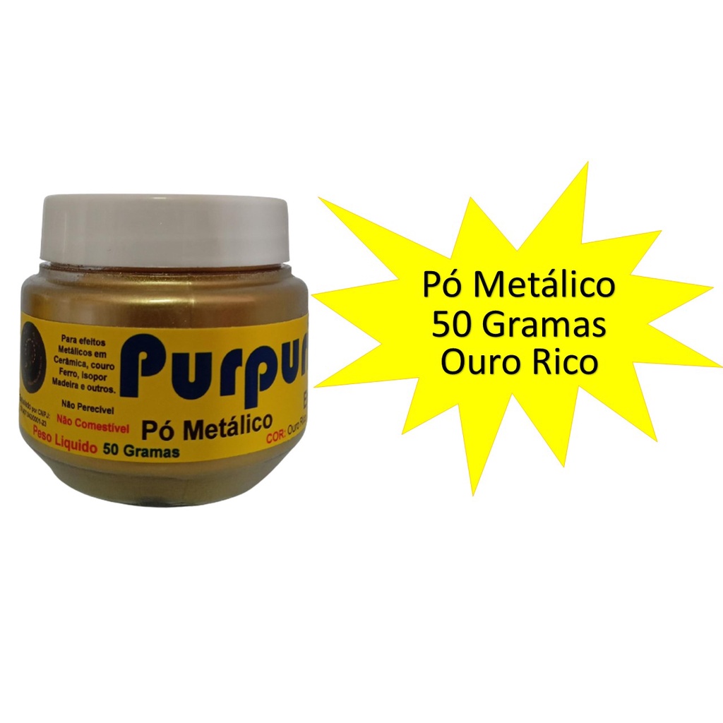 Purpurina Pó Metálico Ouro Rico Dourado Extra Fina de Alta Qualidade Pote com 50g