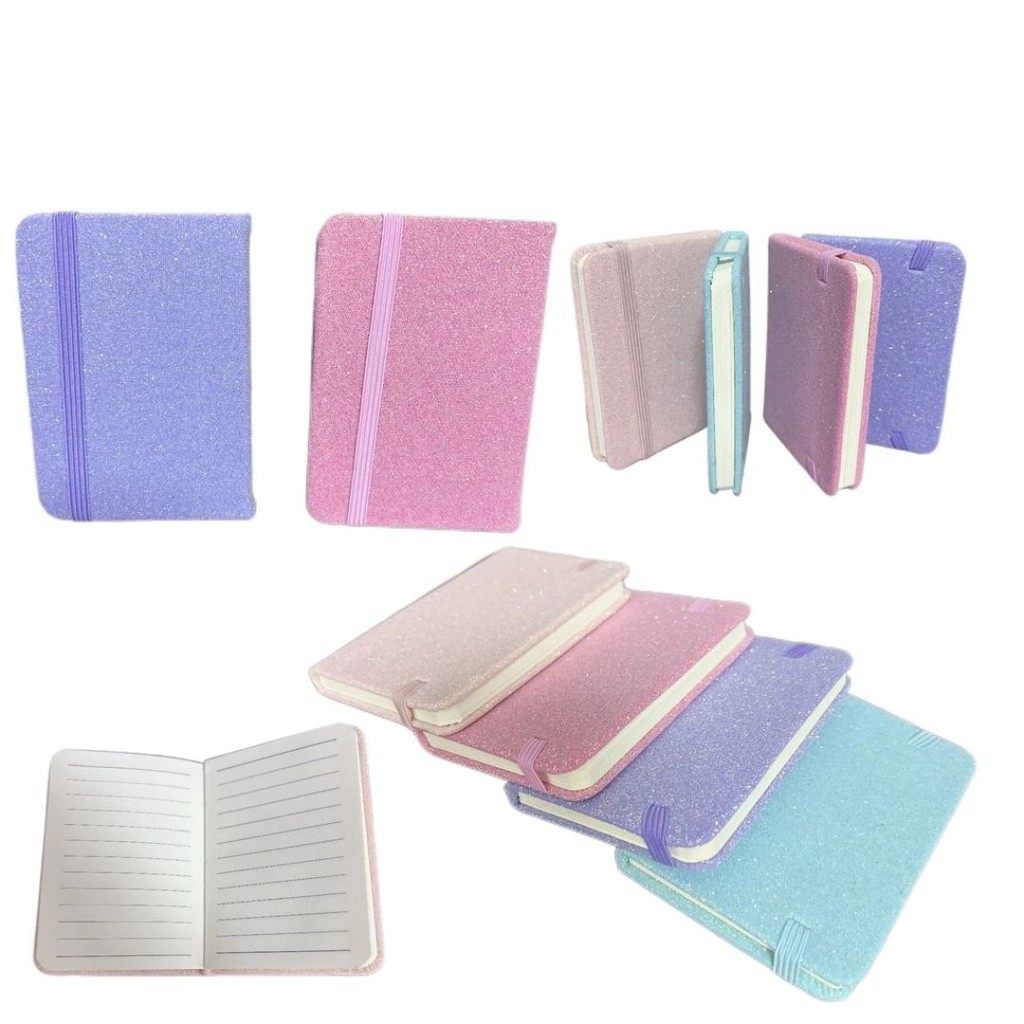 Bloco de Anotações 11x7,5 CM Com Brilho Purpurina para Escola - A7- 80 Folhas