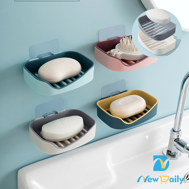 Kit 3 Saboneteira De Pia Escorra A Caixa De Sabão Para Banheiro Com Adesivo Porta Sabonete De Barra dupla drenagem BC-46