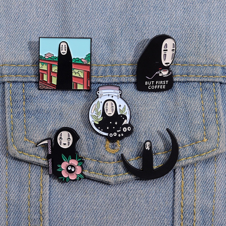 111 Estilos Desenho Animado Personagens Periféricos De Anime Japonês Esmalte De Lapela Pino Spirited Away Faceless Metal Brochura Hayao Miyazaki Manga Crachá Moda Acessórios De