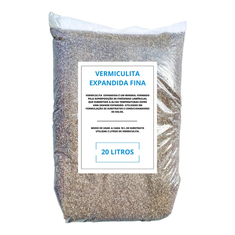 20 Litros Vermiculita Fina Expandida Para Arear Terra Adubos Absorção Agua Plantas Suculentas Flores