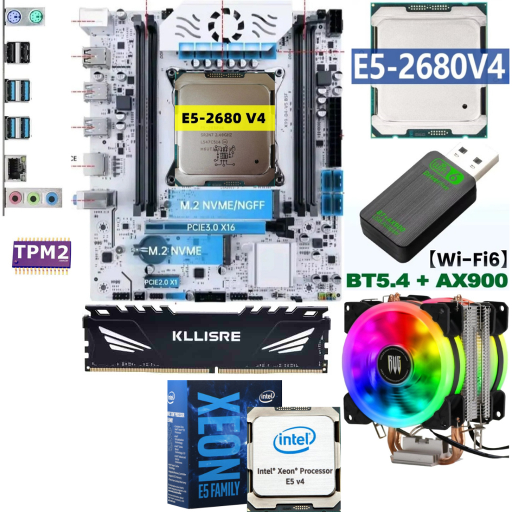 KIT PLACA MÃE INTEL XEON E5-2680 V4 14 núcleos e 28 threads + 16GB Memória DDR4 + Cooler Duplo Rgb + Adaptador WI-FI