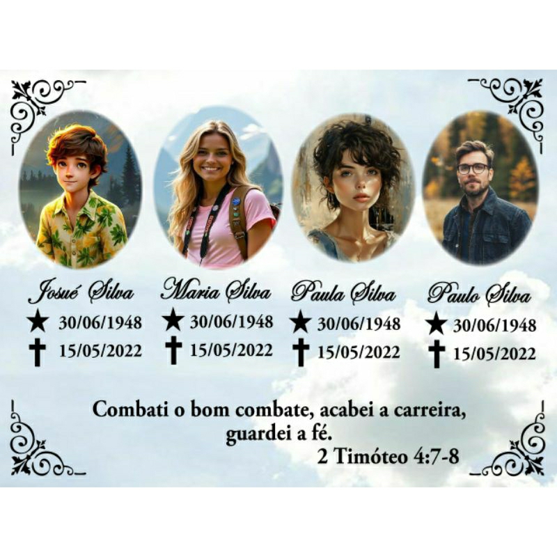 Placa Para Jazigo Túmulo Lápide De Metal Homenagem Até 4 Pessoas