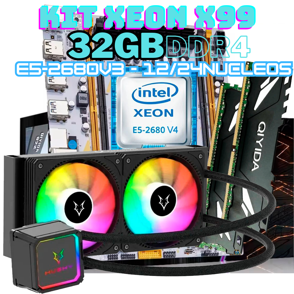 Kit Xeon Gamer X99 32GB DDR4 E5-2680 V4 | Placa Mãe + CPU + Memoria + Water Cooler – Alto Desempenho