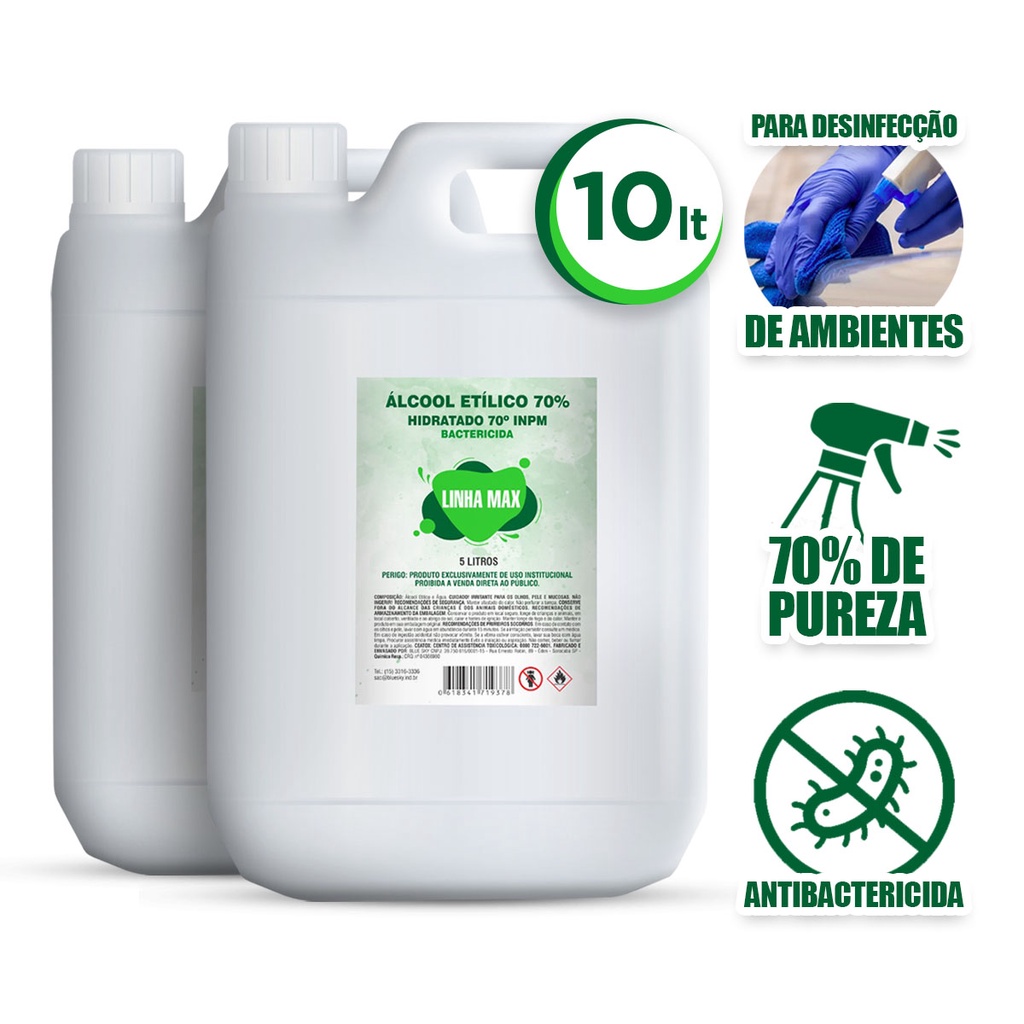 Kit 2 Unidades Álcool Etílico 70° Para Higienização Limpeza Bactericida Liquído 5 Litros