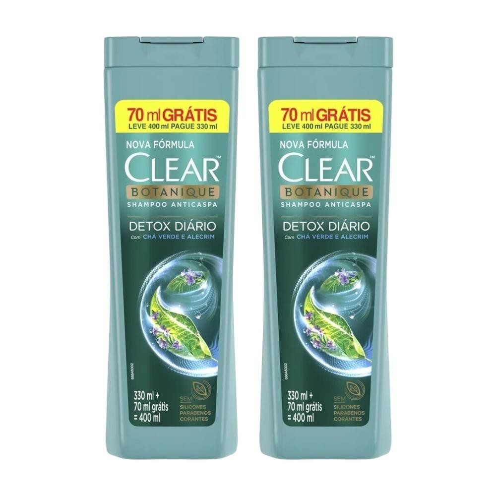 Kit 2 Unidades Shampoo Clear Anticaspa Detox Dirio Leve 400ml Pague 330ml