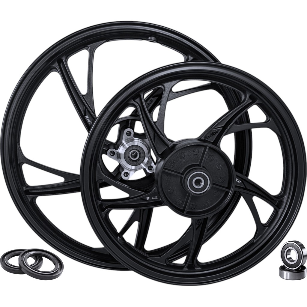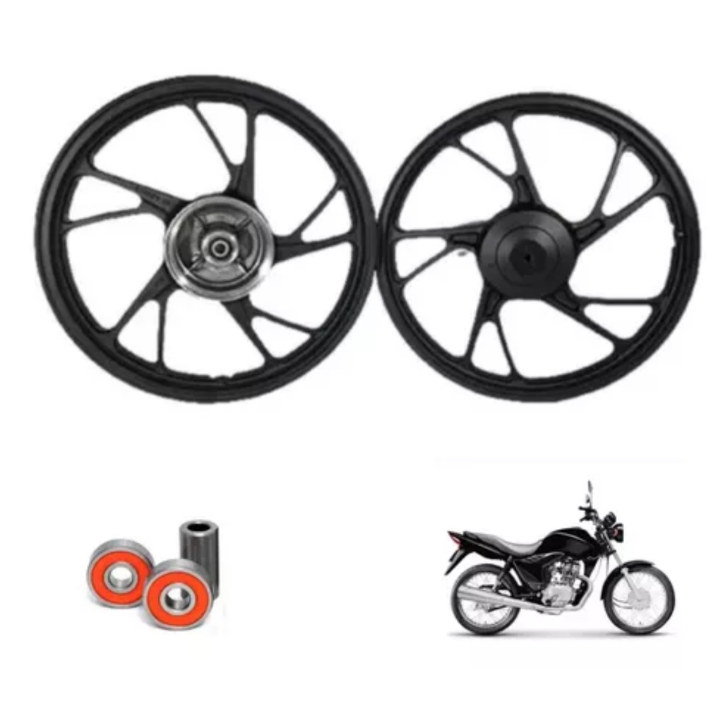 Par de rodas de liga leve + rolamentos modelo 6 palitos para Honda Biz 100 1998 a 2005