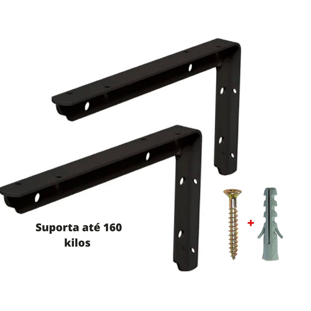 Kit 2 Mao Francesa Suporte Pia Super Reforcado PRETO FOSCO com Buchas e Parafusos
