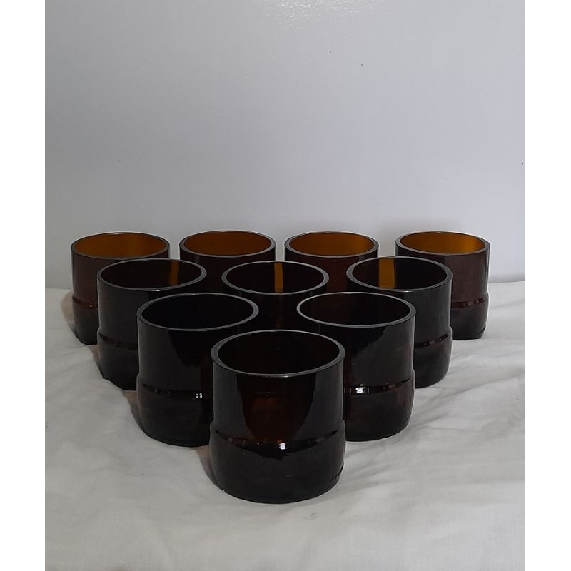 kit 10 Copos âmbar whisky/ porta velas/pote patê, de vidro.