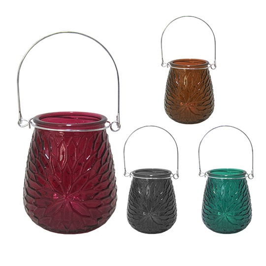 Porta Vela Castiçal de Vidro Redondo Colors Com Alça De Metal 10,5x9cm