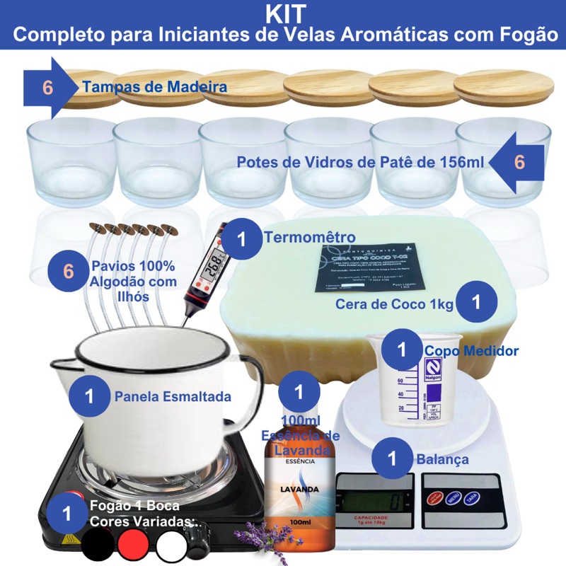 kit Premium para Iniciante de Velas com Cera de coco e Fogão 1boca