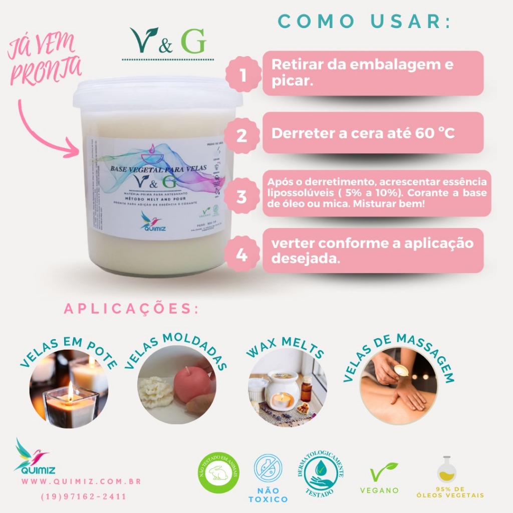 Kit Com 2 Un Cera De Palma Para Velas Vegetal V&g 900gr