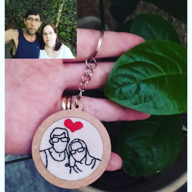 Chaveiro bordado com foto, feito a mão, produto artesanal, foto do casal, foto da familia, presenteie quem você ama