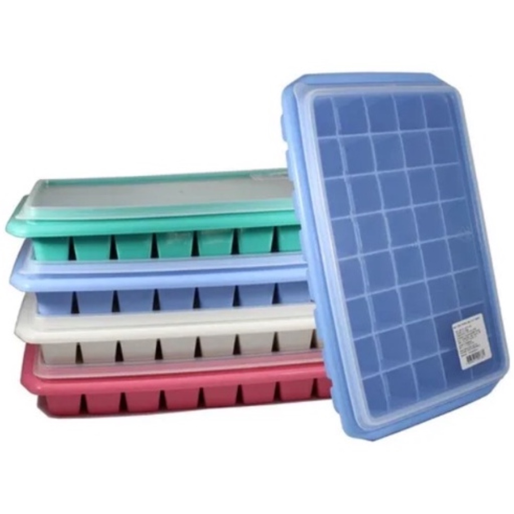 Forma de Gelo Com Tampa 40 Cubos Bandeja Plástico