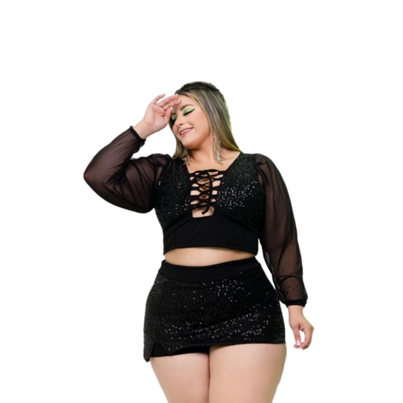 REF:37 CONJUNTO CROPED+SHORT SAIA MODA PLUS SIZE E MIDI PLUS FEMININA C/ paetê