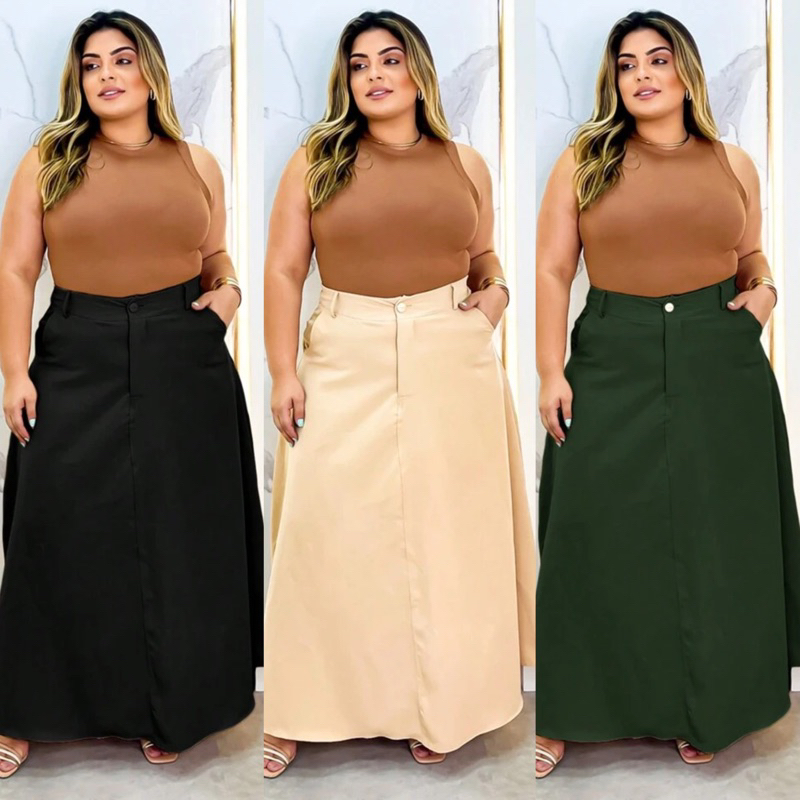 Saia longa plus size moda feminina pronta entrega envio rapido