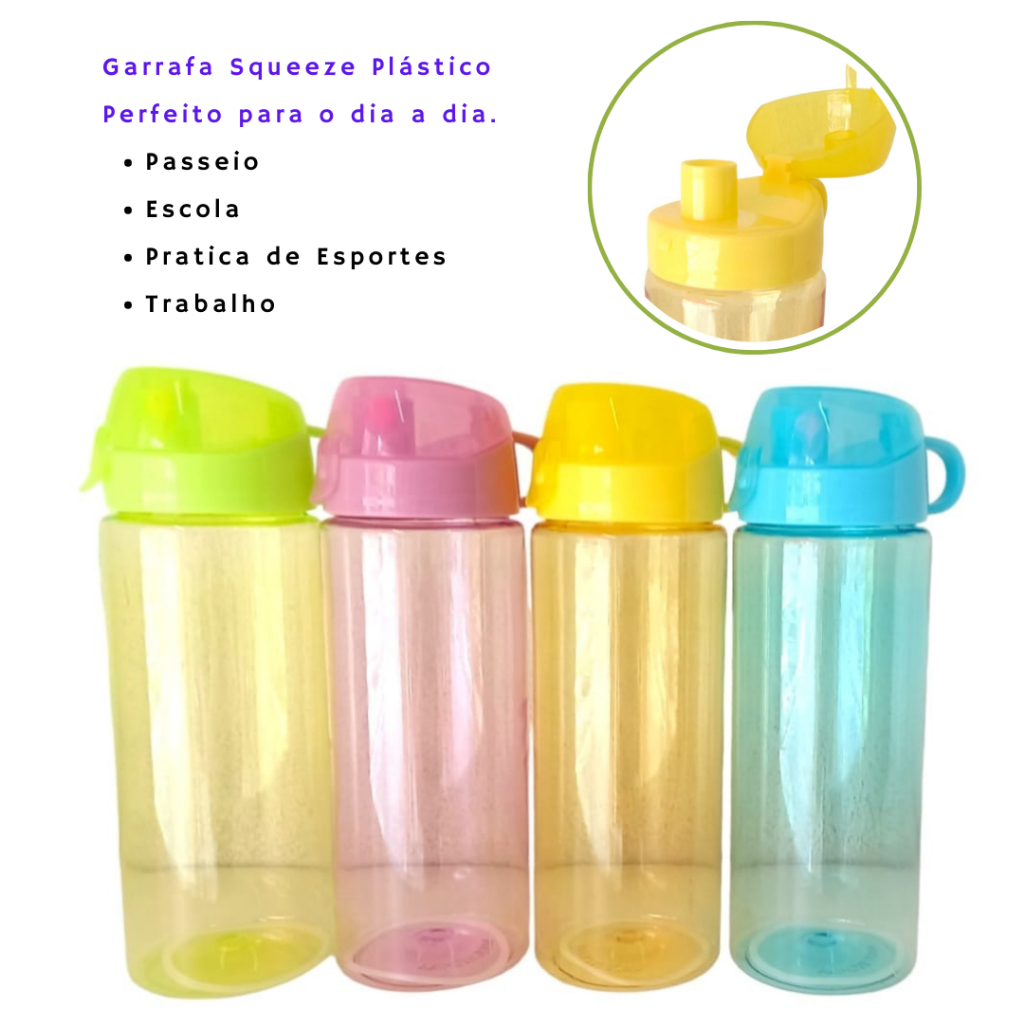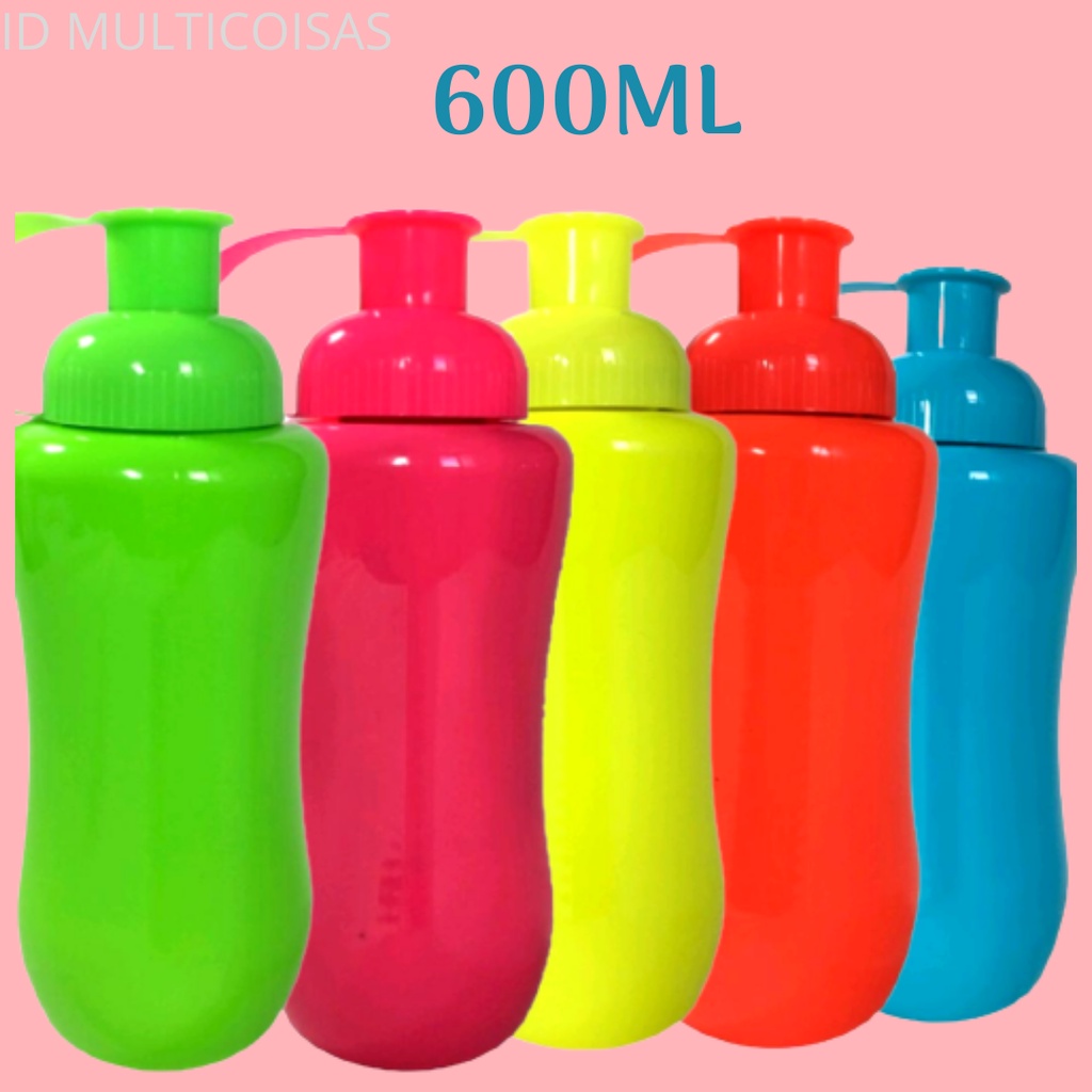 Garrafa Squeeze Plástico Perfeito Dia a Dia 600 ml Esporte Academia Escola Trabalho Passeio