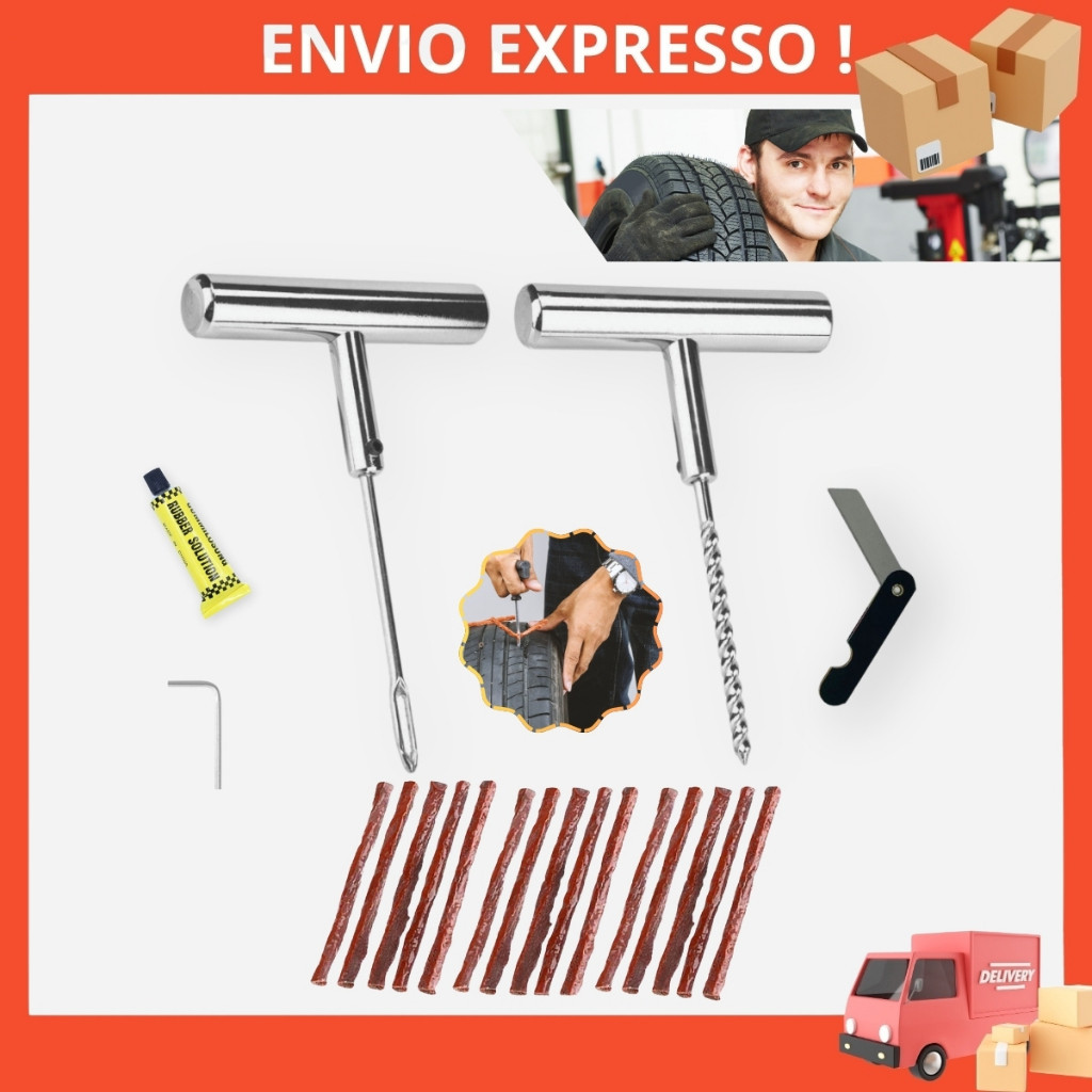 Kit Remendo Profissional Pneu Sem Câmara Moto Carro Completo + 15 Reparo Macarrão Refil