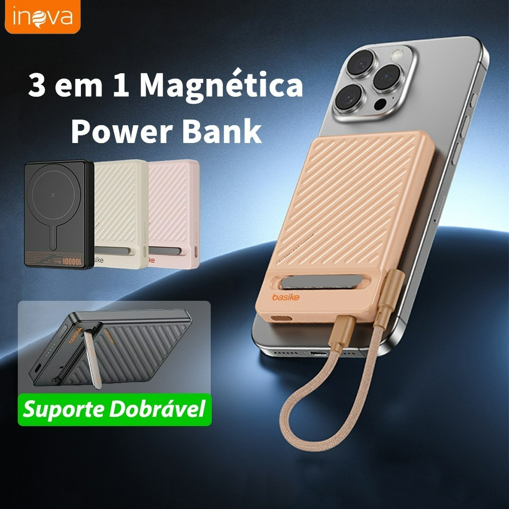 Power Bank 10.000mAh 22.5W – Carregador Portátil Ultrafino com Suporte Carregamento Rápido Sem Fio 15W e Tipo C
