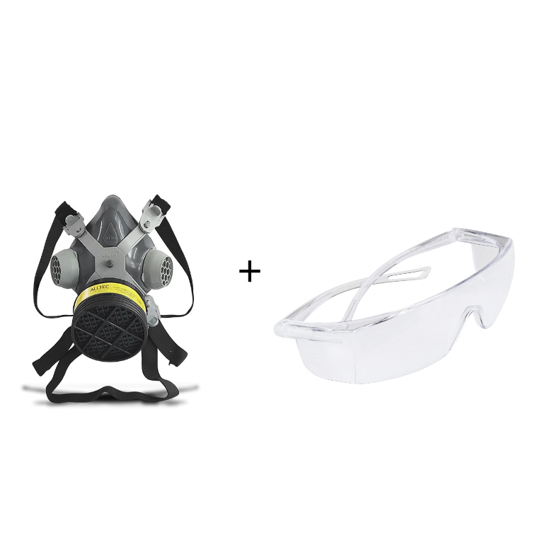 Kit Máscara respirador 1/4 facial MASTT Alltec VO-GA + Óculos de Proteção Filtro para Pintura Poeira Gases Nevoa Vapores orgânicos