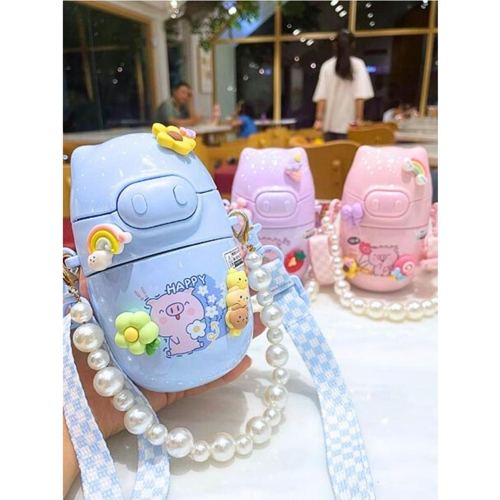 Mini Garrafa Térmica Portátil Infantil Aço Inox 304 para Crianças Modelo com Alça Super Fofa de Porquinho 220ML