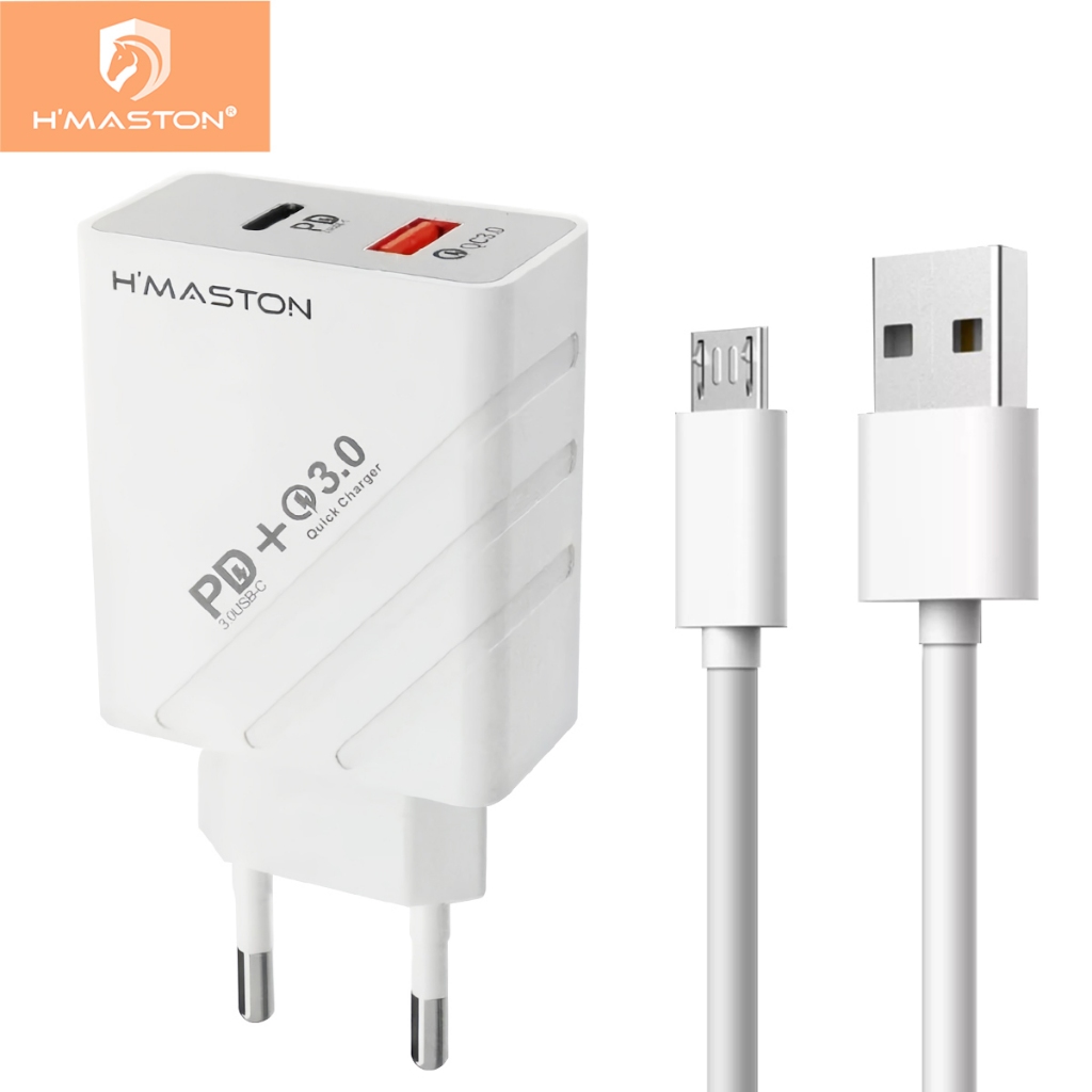 H'maston Y41 48W QC 3.0 PD USB-C 9A Fonte Tomada Rápida Carregar Celular Portátil Usb e Tipo-c Cabo V8
