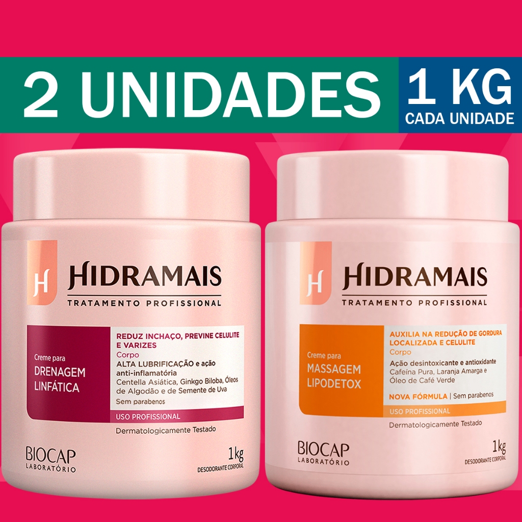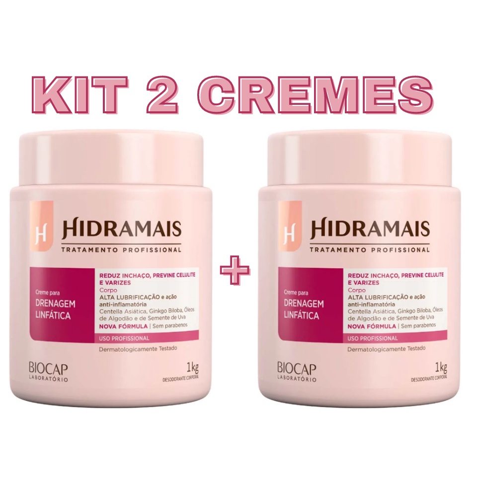 Kit 2 Cremes Hidramais Para Massagem - Drenagem Linfática - 1 Kg - ORIGINAL