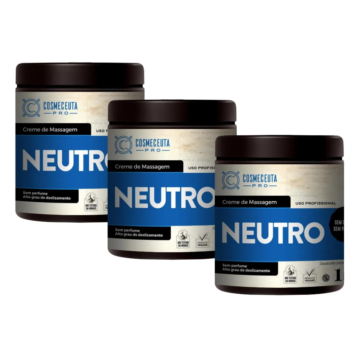 KIT 3 CREMES DE MASSAGEM NEUTRO CORPORAL VEGANO COSMECEUTA