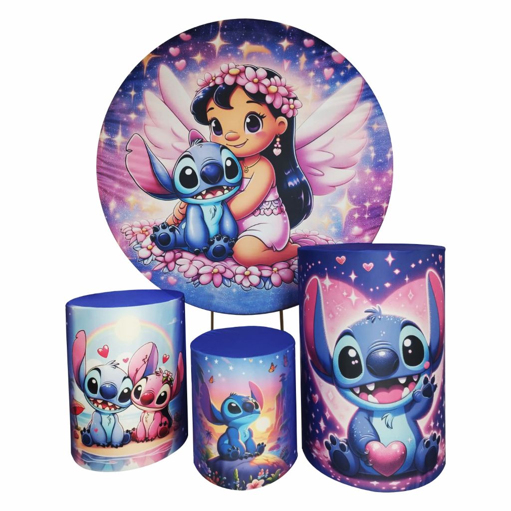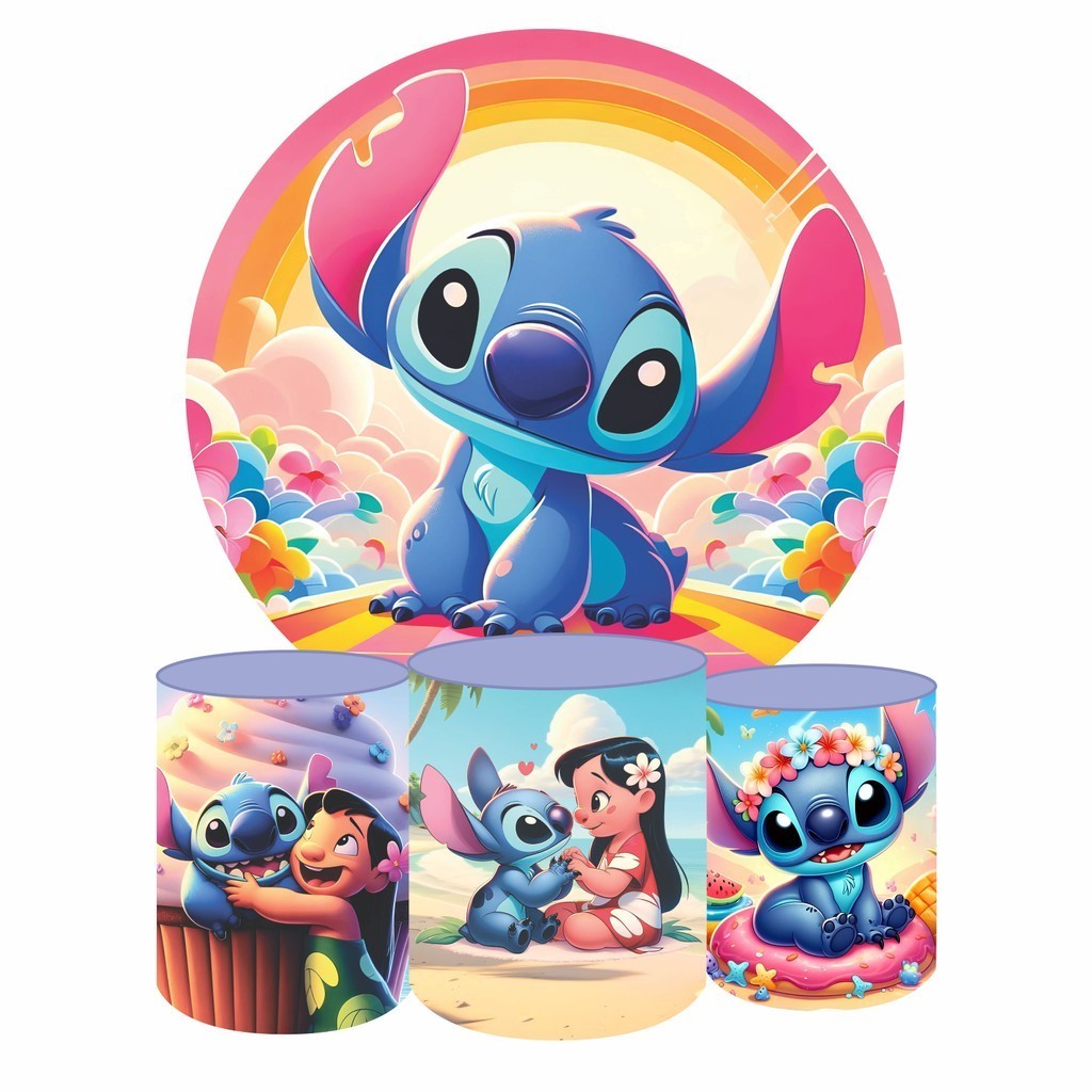 Kit Painel Redondo e Cilindro Capas Festa Stitch Decoração