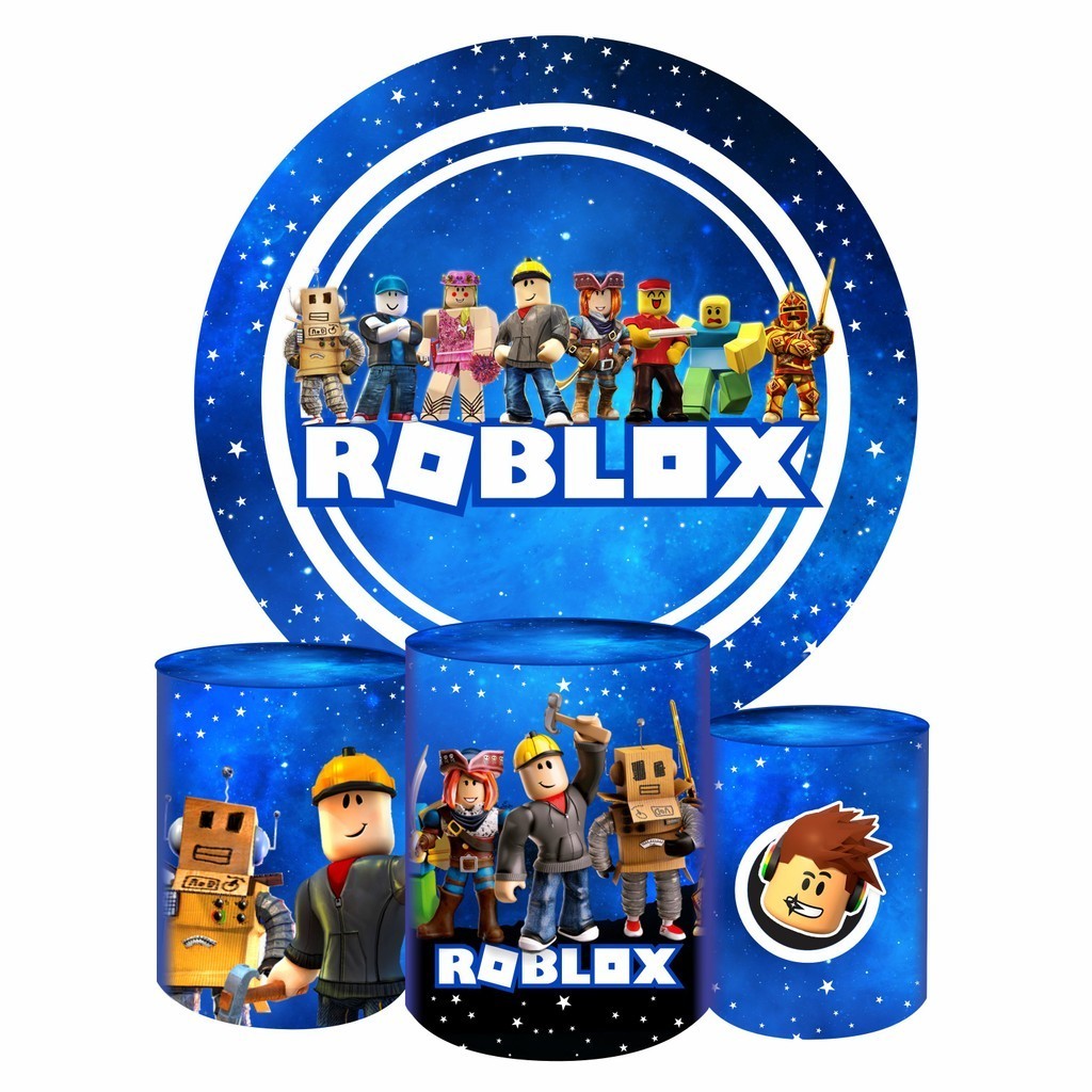 Kit Painel Redondo e Cilindro Capas Festa Roblox Decoração