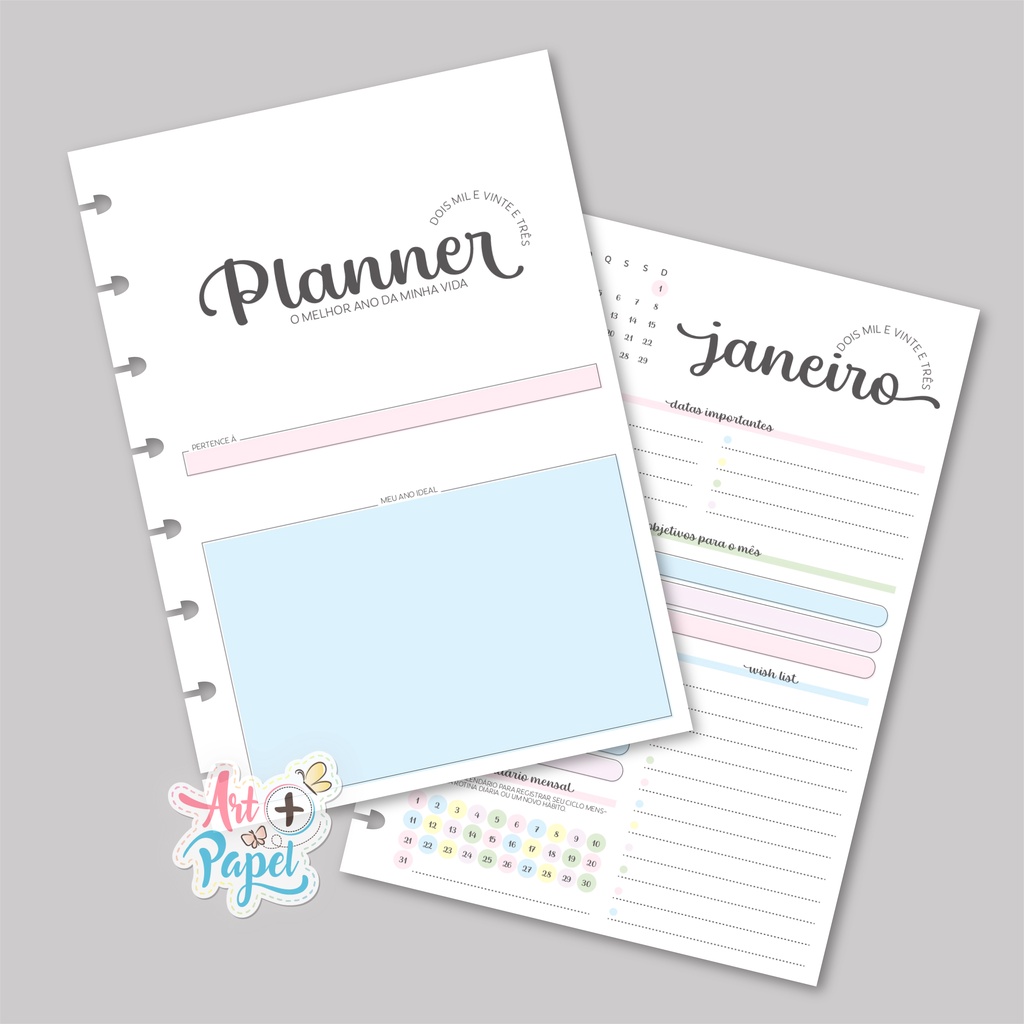 Refil Planner 2023 para Caderno de disco inteligente (Colegial - 9 furos)
