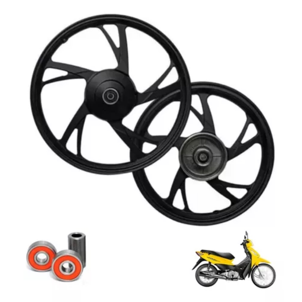 Jogo Roda Honda Biz 100 110 125 6 Palito Preto Freio Tambor Com Rolamento Modelo Original