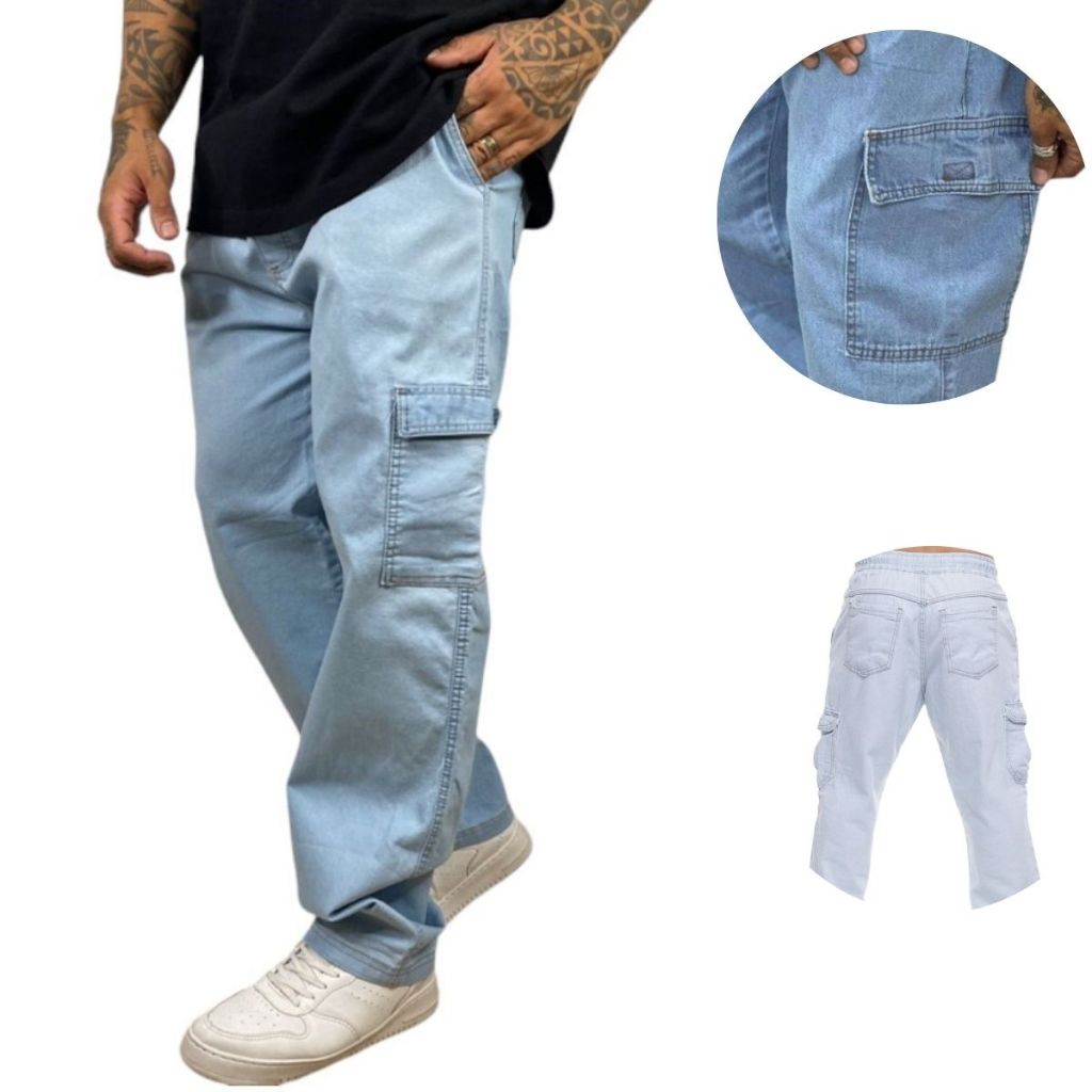 Calça Cargo Masculina Jeans Skatista Modelo Larga Com Bolso Lateral Envio Imediato