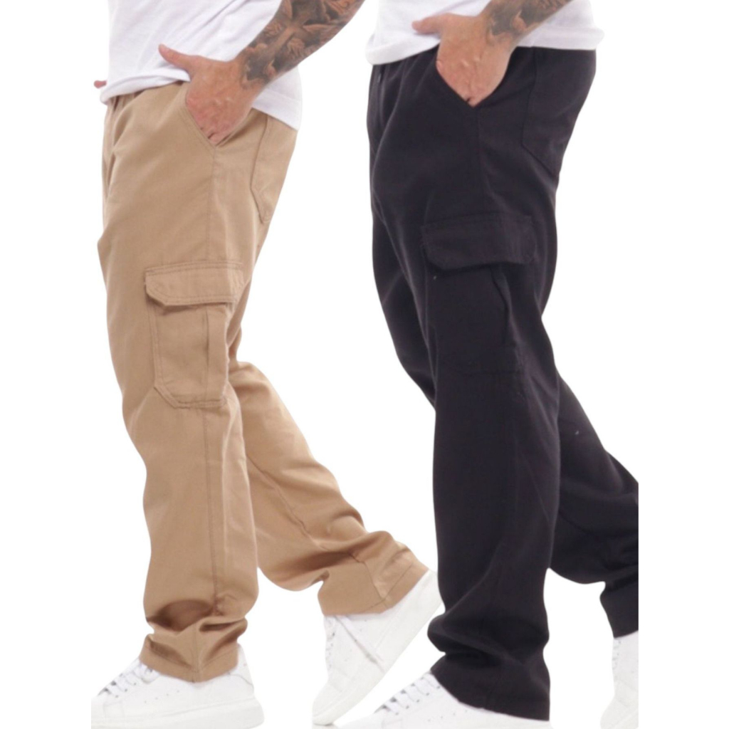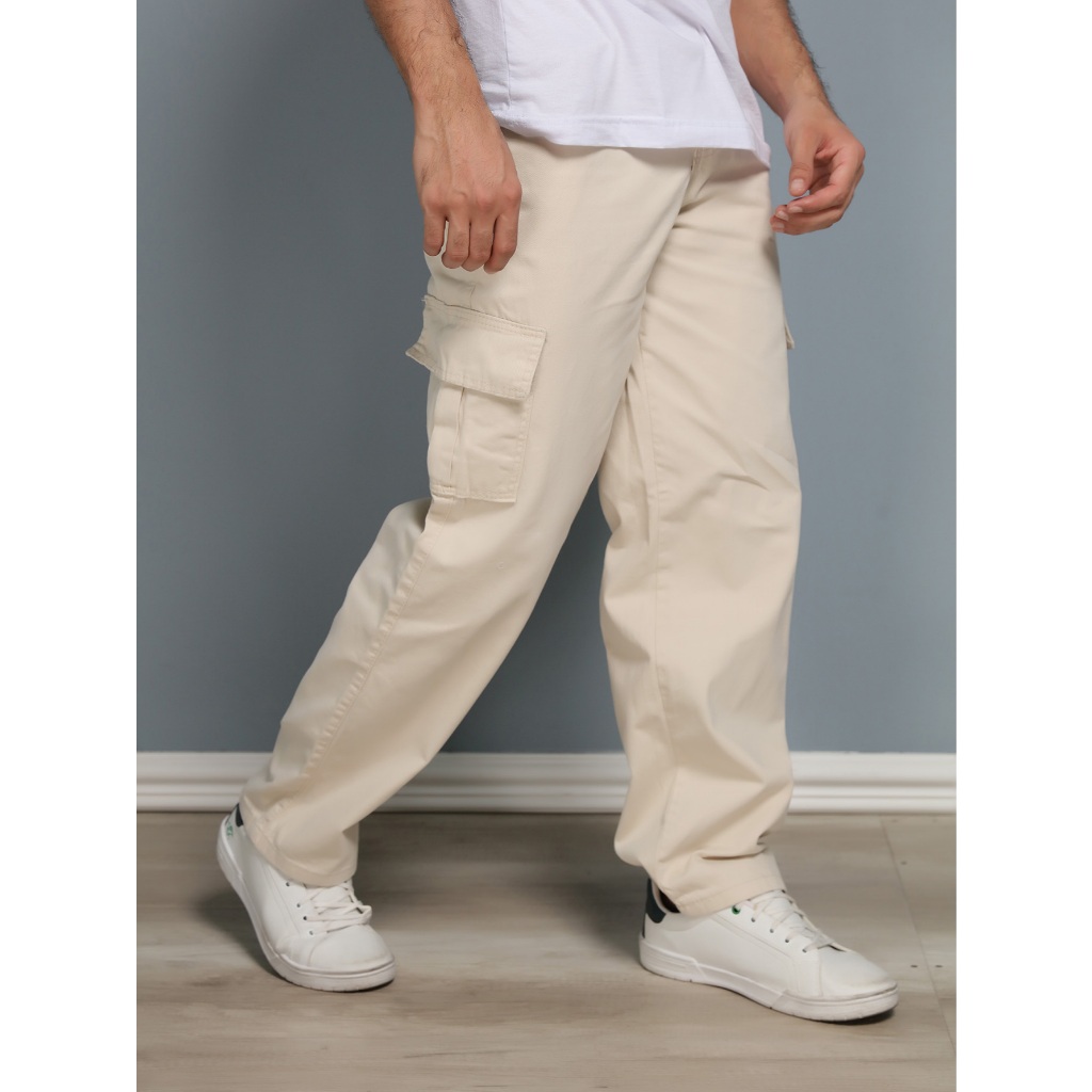 Calça Cargo Masculina Skatista Modelo Larga Com Bolso Lateral Bege Preta