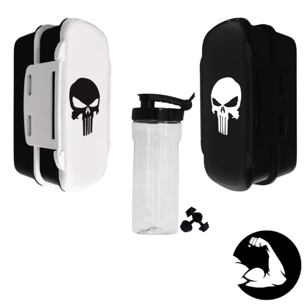 Kit Marmita Fitness C/talher Divisorias 2 Camadas Personalizada + Shakeira De Academia Garrafa Coqueteleira 500 ml