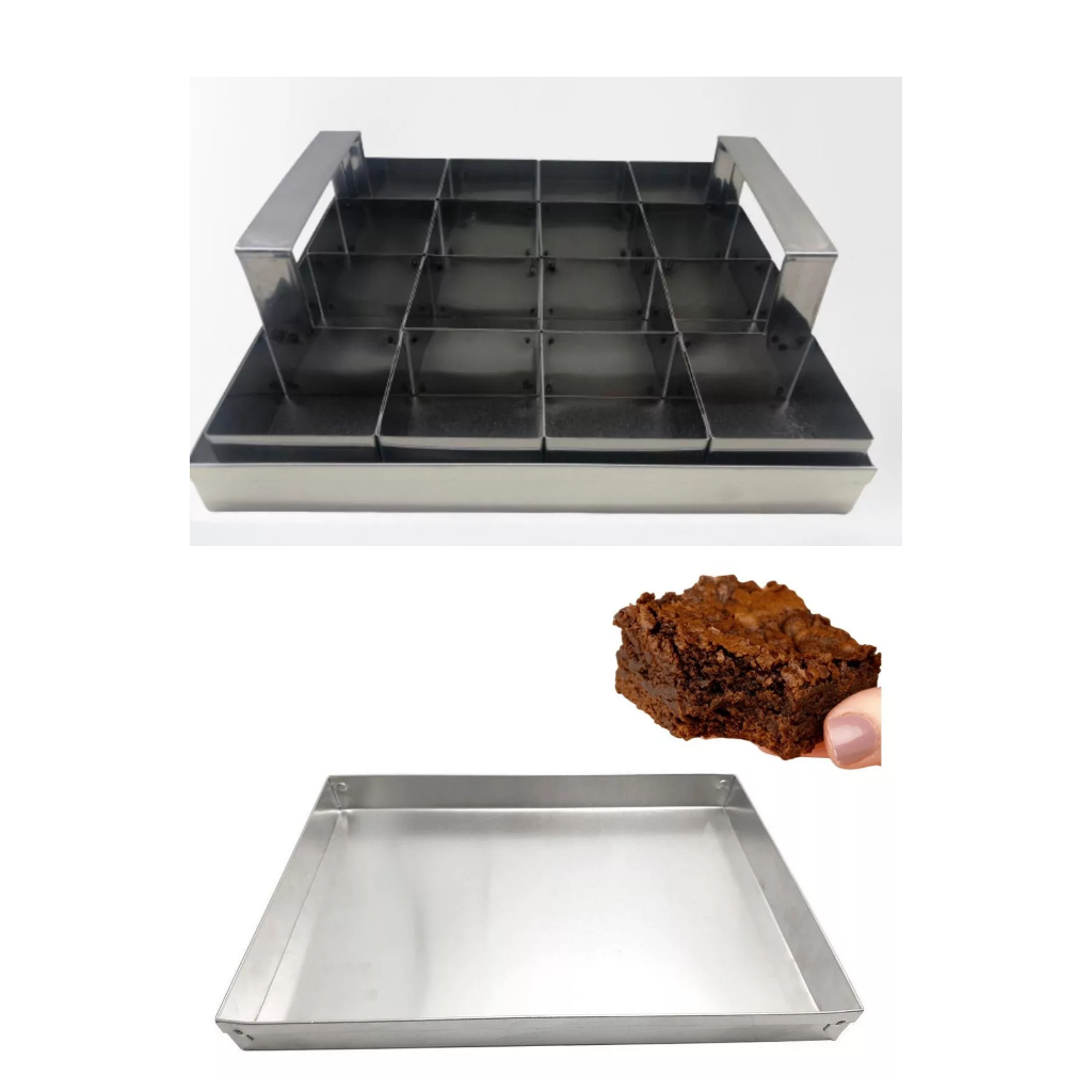 Kit Com Cortador De Brownie 100 Pedaços 3x3 Inox + Assadeira 31,5x31,5x3cm Alumínio