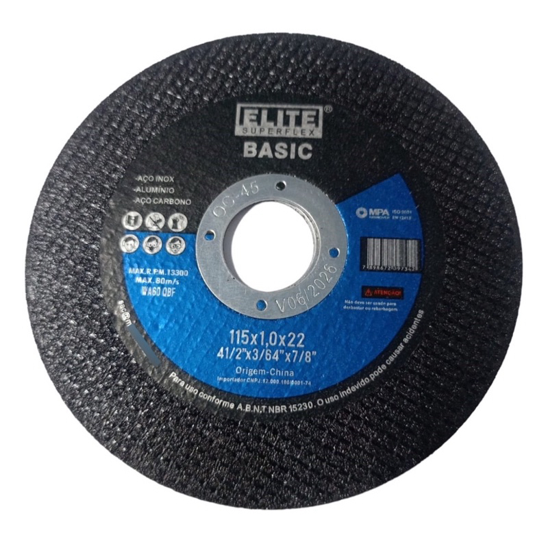 Kit com 50 Peças Disco de corte inox ELITE BASIC- INOX/FERRO/ALUMÍNIO 4.1/2 x 1.0