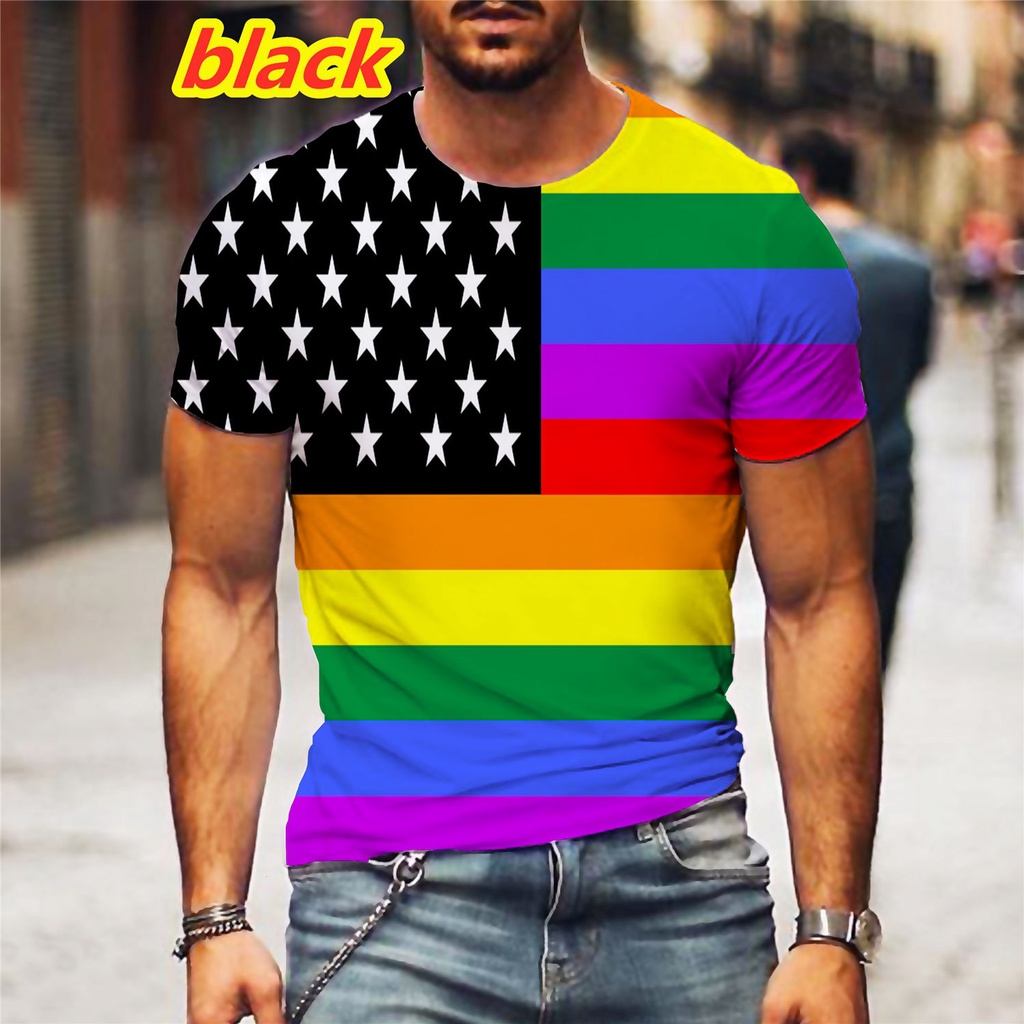 Nova Moda Bandeira LGBT Para Camiseta Gay Lésbica Personalidade 3D Arco-Íris Colorida
