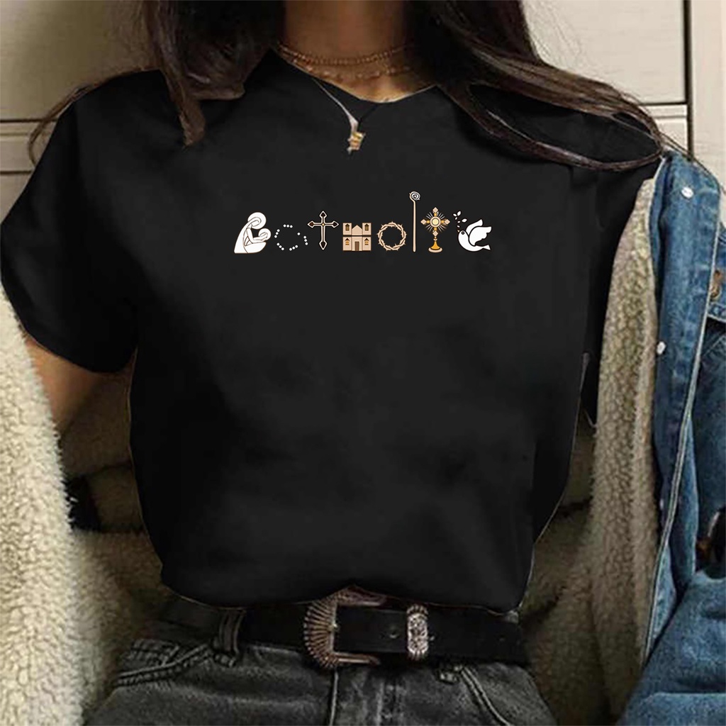Camiseta feminina Arte Ilustração simbolos LGBT Arco-íris Preta de algodão