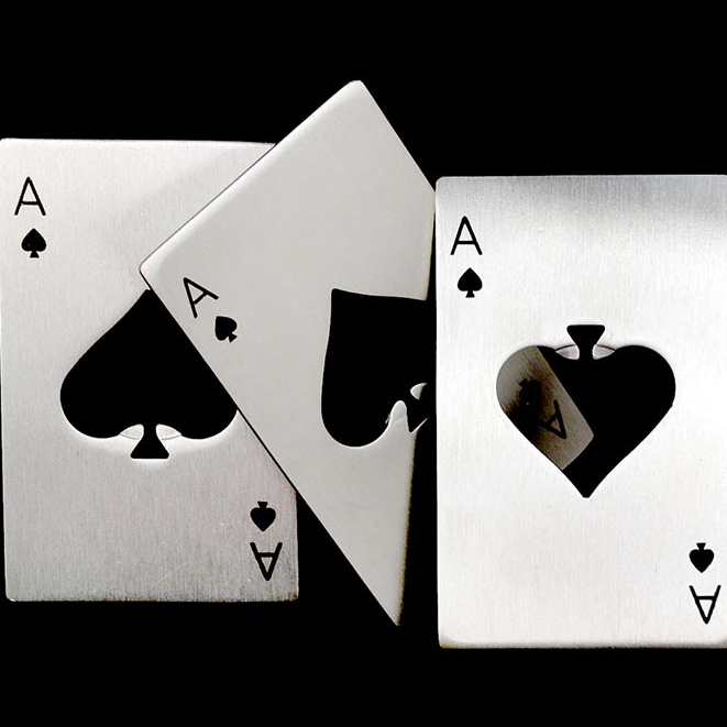 Kit 20 Abridor de Garrafa Formato Carta De Baralho As De Espadas Aco Inox